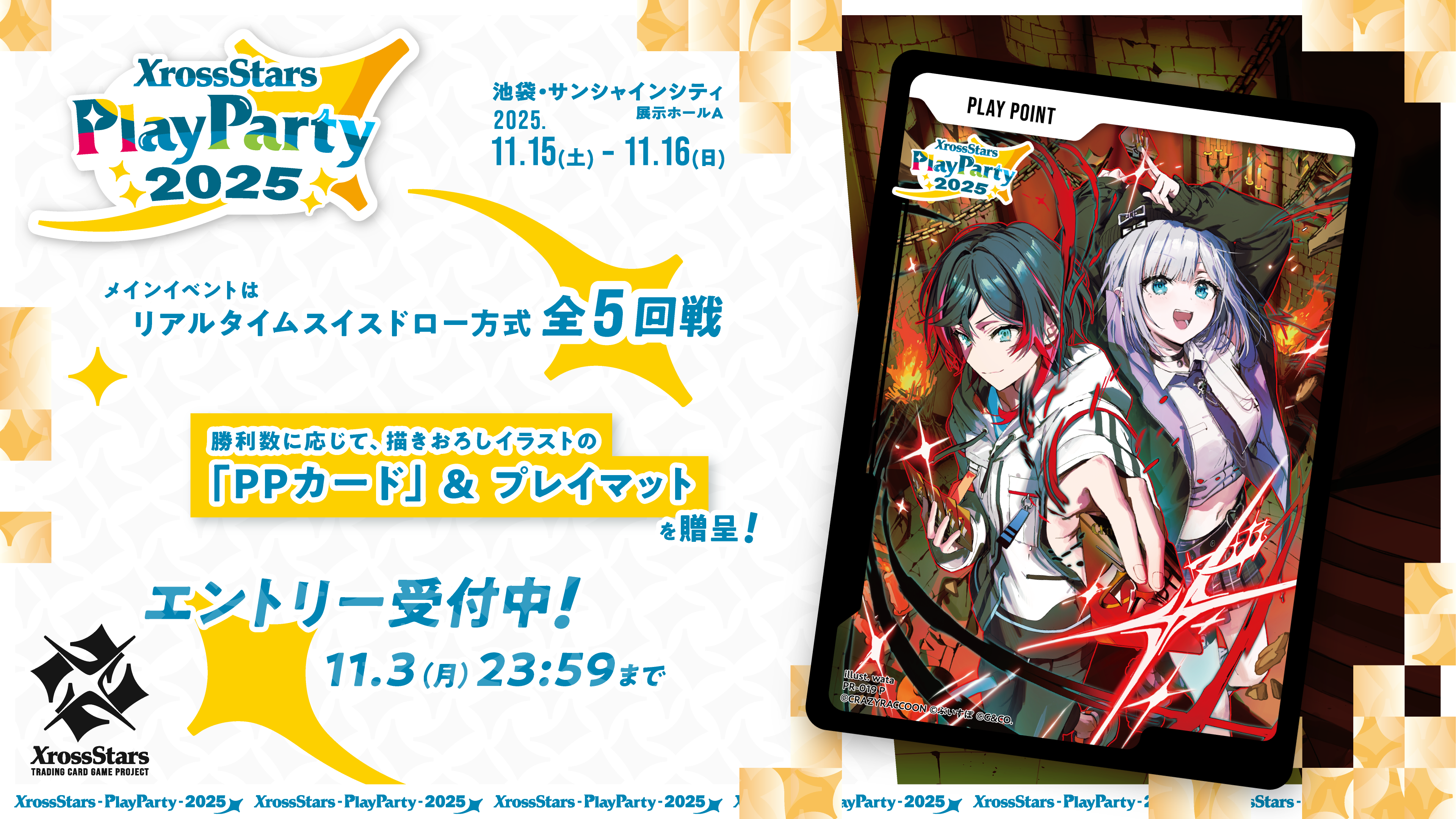 『Xross Stars Play Party 2025』の開催を記念した、特別な描きおろしイラストのPPカードおよびプレイマットが、勝利数に応じて授与されます。