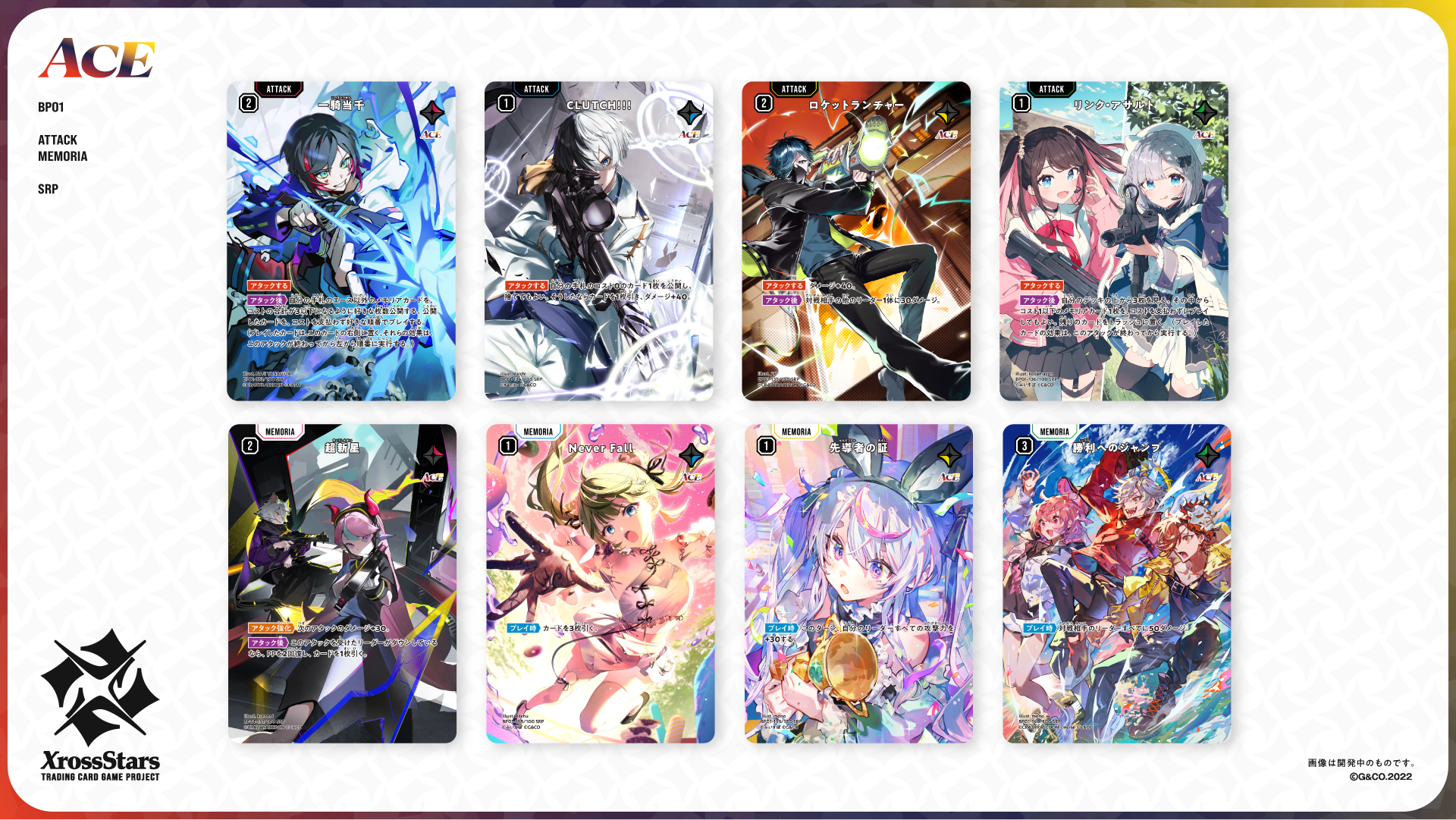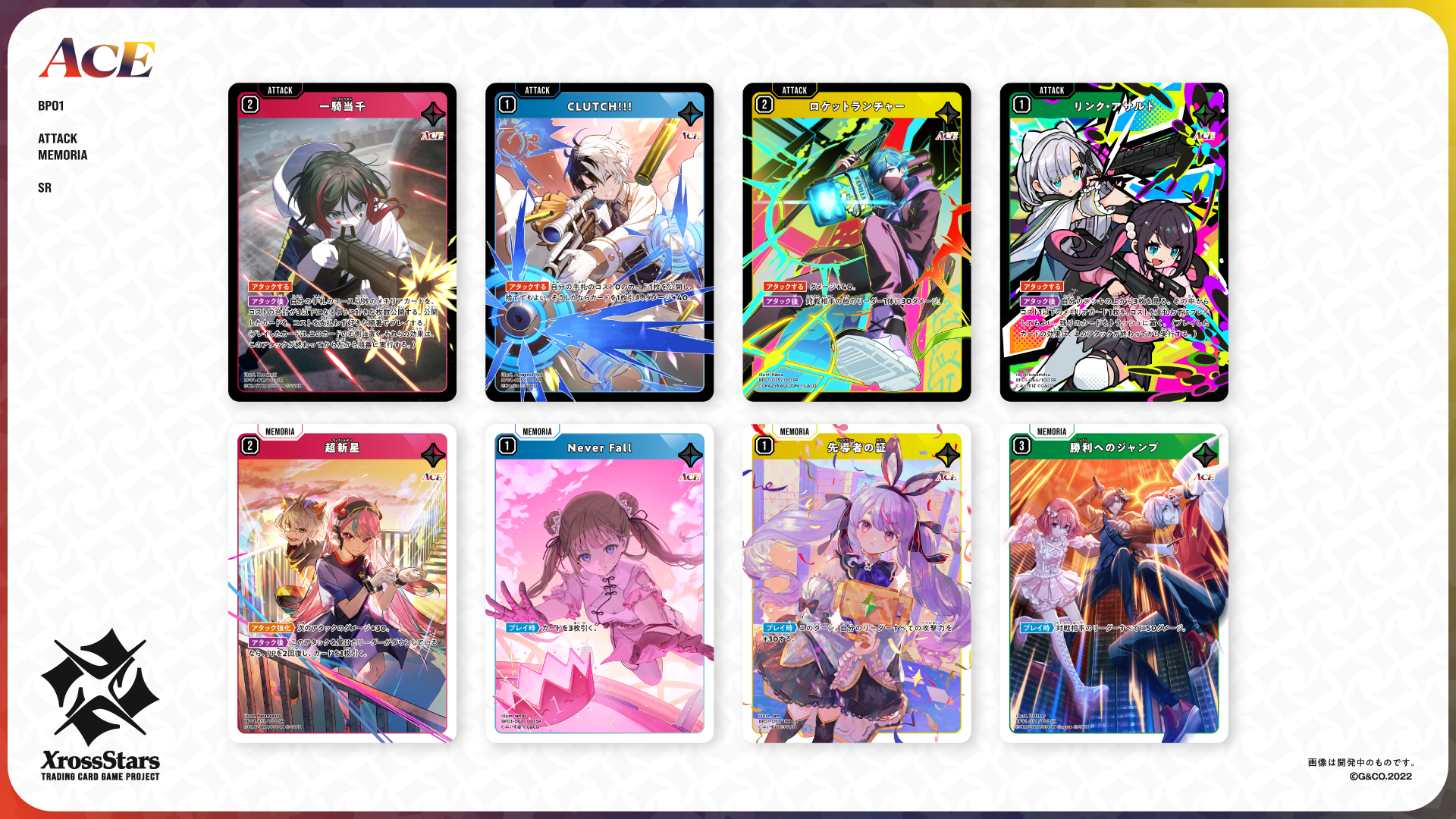 ブースターパック第1弾『Luminous Daybreak』にはアタックカード4種類、メモリアカード4種類の計8種類ACEカードが収録されます。